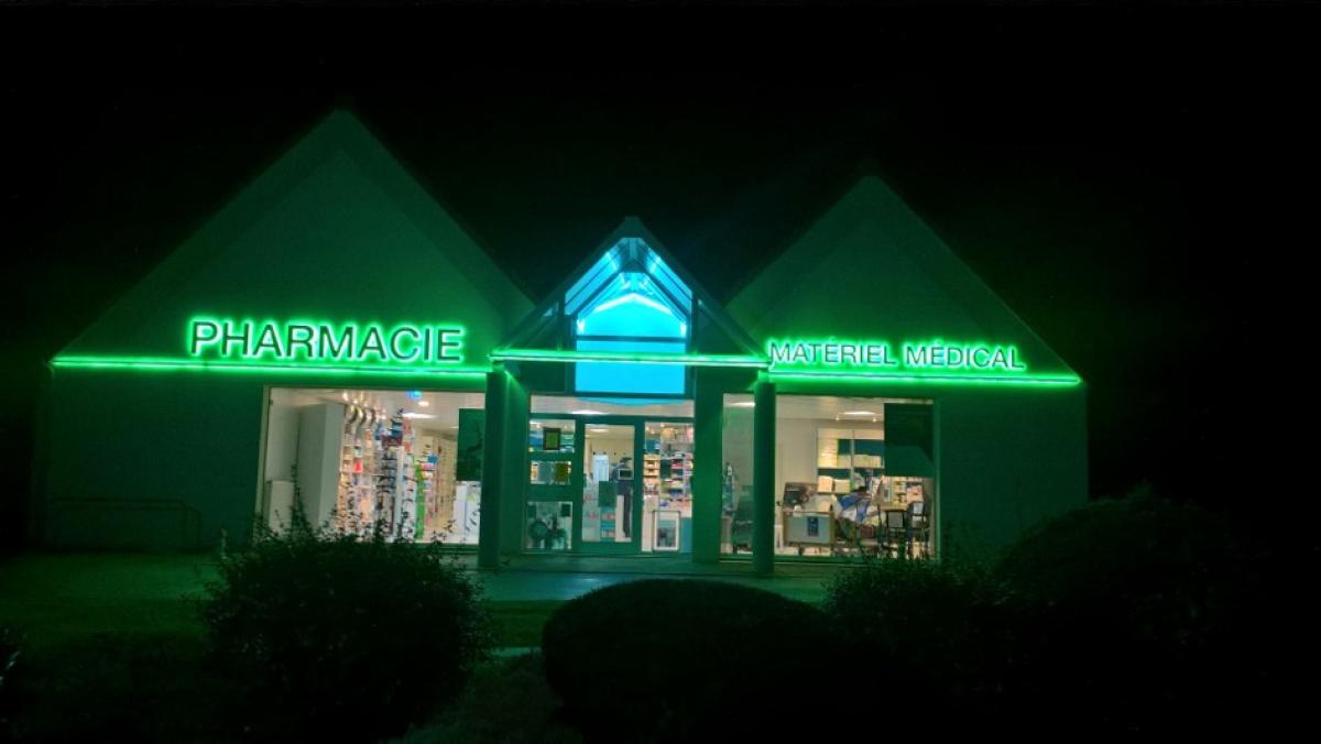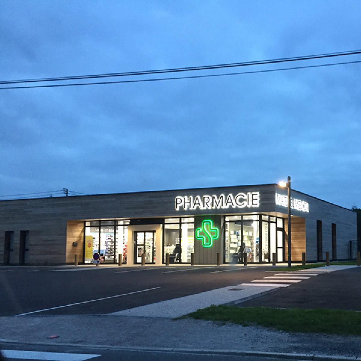 Croix de pharmacie, enseignes, totems, vitrophanie, un ensemble cohérent